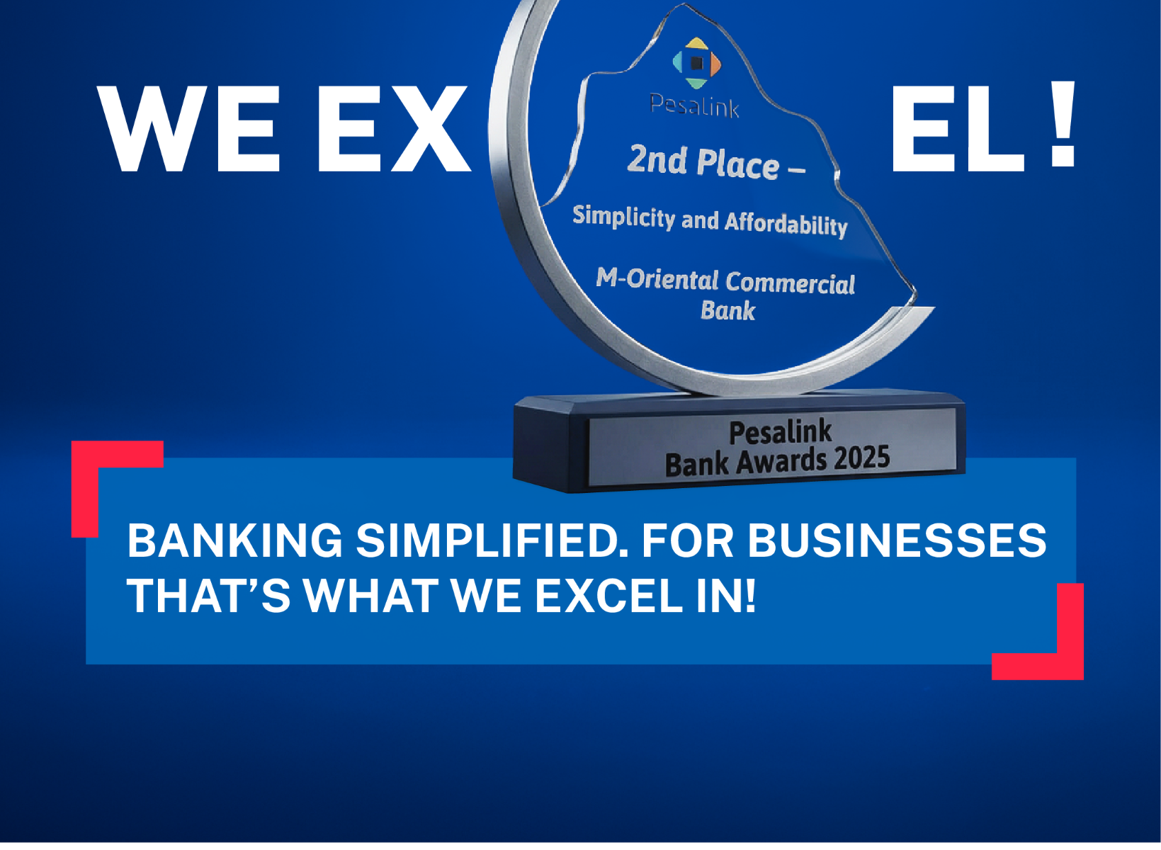 M Oriental Bank is proud to have emerged First Runners-Up in the Simplicity & Affordability category at the 2025 PesaLink Bank Awards.
